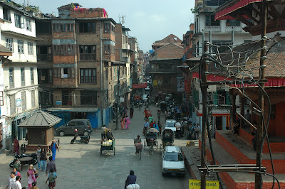 El centro de Kathmandu gira en torno al barrio de Thamel y la Plaza Durbar, y es un caos de anárquicas callejuelas llenas de obsoletos tendidos eléctricos, templos medievales, motos, rickshaws, bicicletas, taxis, vacas, vendedores, shadus y monjes tibetanos entre otras cosas, aparte del sonido incesante de los claxons y la polución que reina en toda la ciudad debido a tanto combustible de mala calidad.